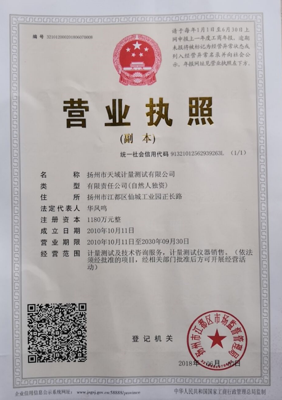 揚州市天域計量測試有限公司,是于2010年10月成立的一家集計量器具檢測,計量技術咨詢和計量器具銷售為一體的專業(yè)化技術機構的專業(yè)機構。